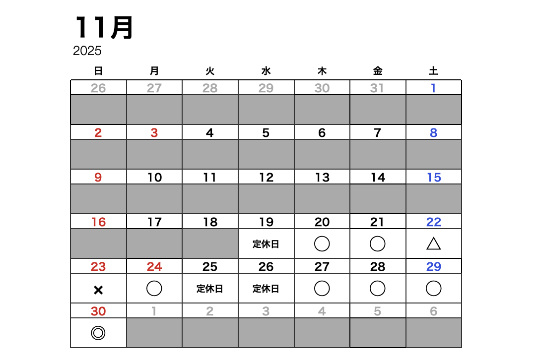 11/30(日)までの詳しい空き時間はこちら↓↓