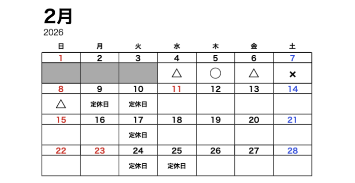 2/8(日)までの詳しい空き時間はこちら↓↓