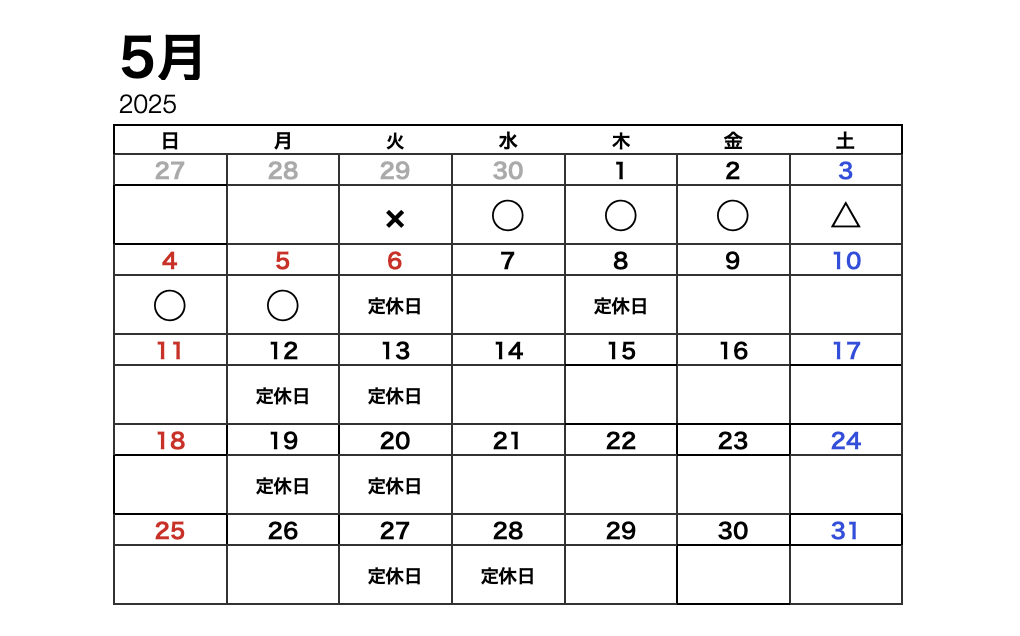 5/5(月)までの詳しい空き時間はこちら↓↓