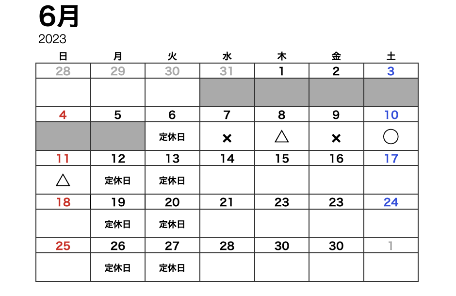 6/11(日)までの詳しい空き時間はこちら↓↓