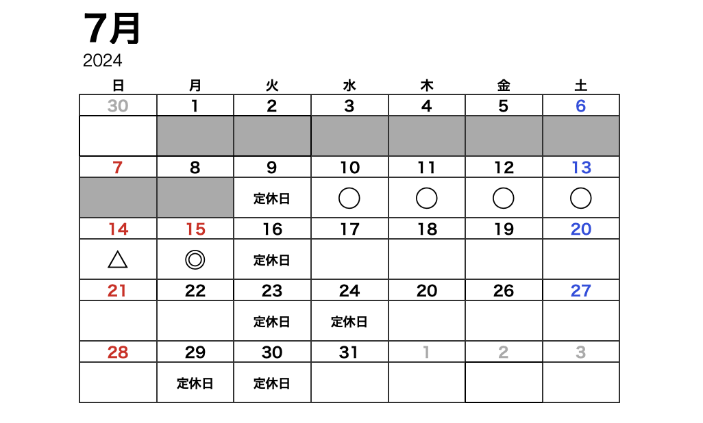 7/15(月)までの詳しい空き時間はこちら↓↓